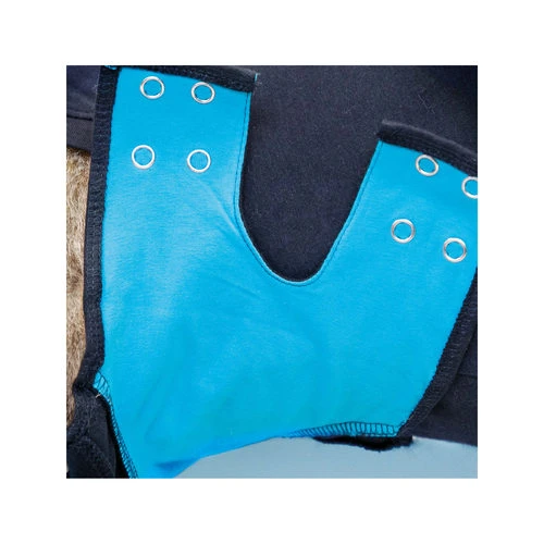 Die Außenseite des Medical Pet Shirts ist dunkelblau (Hund). Die Innenseite ist hellblau und auf der Bauchseite aus doppeltem Material. Das Medical Pet Shirt ist aus dehnbarem Material, 96% Baumwolle und 4% Lycra.